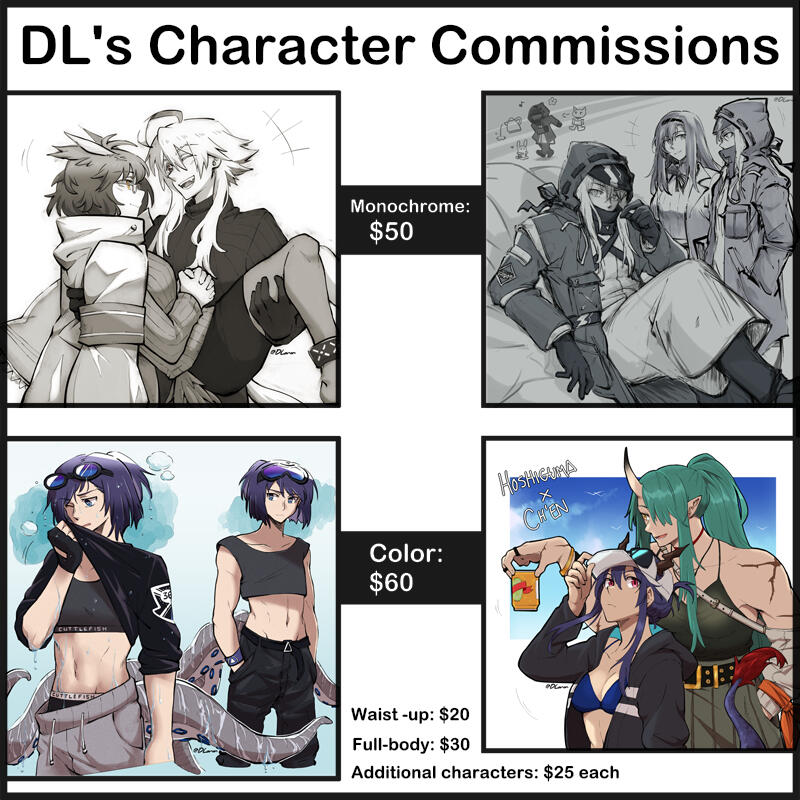 Will draw: canon characters, original characters